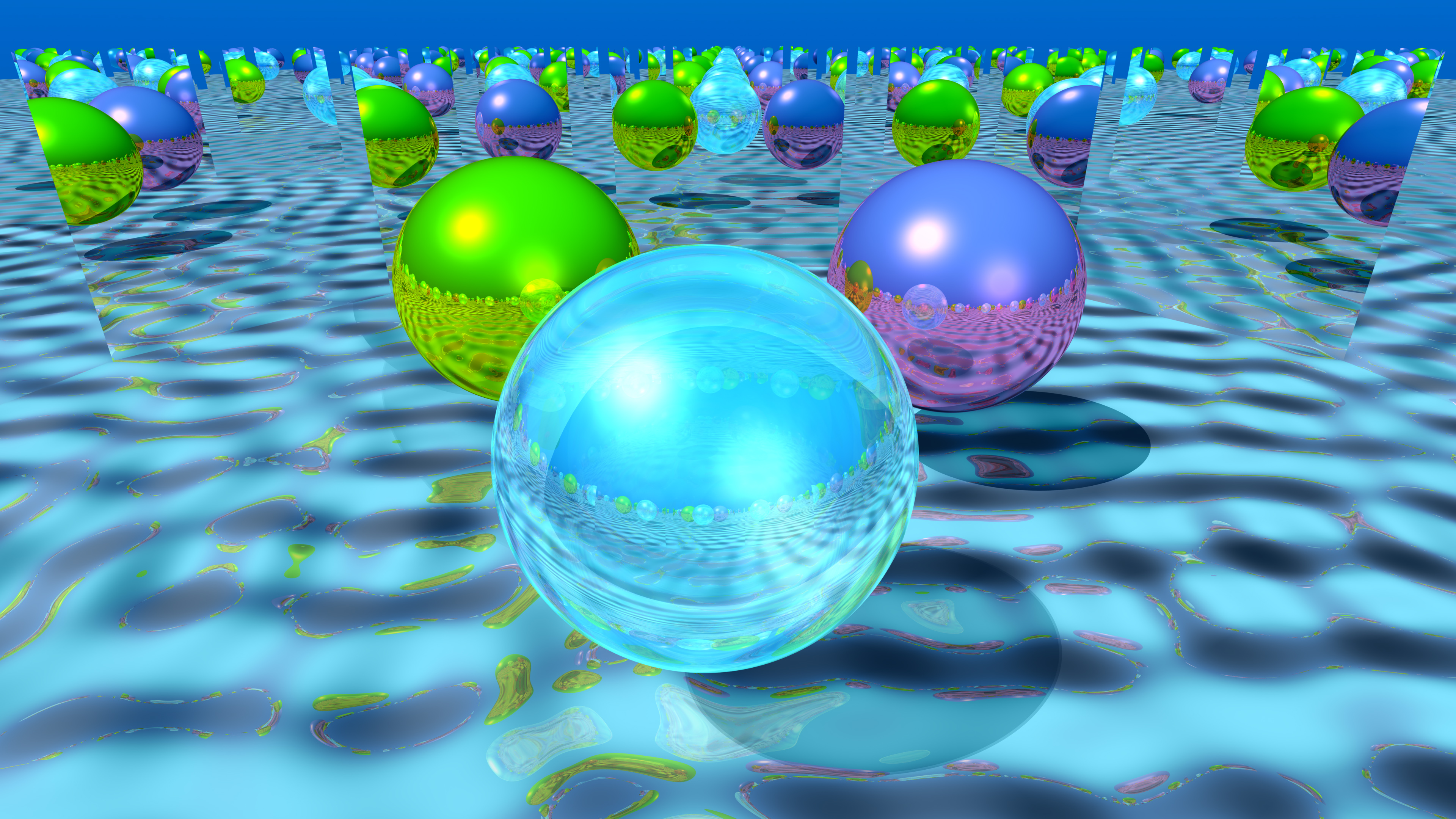 Raytraced image created in the Amiga version of LightWave 5.0 (1995) using a modified version of the included LightWave 4.0 benchmark scene. This was rendered in 4K resolution. |